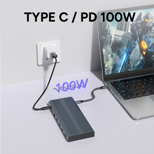 Supports PD 3.0 (up to 100W) pass-through charging to rapidly power your laptop while expanding connectivity. Additionally, the dedicated DC 12V input ensures the system remains rock-solid even when multiple high-power external drives are connected.