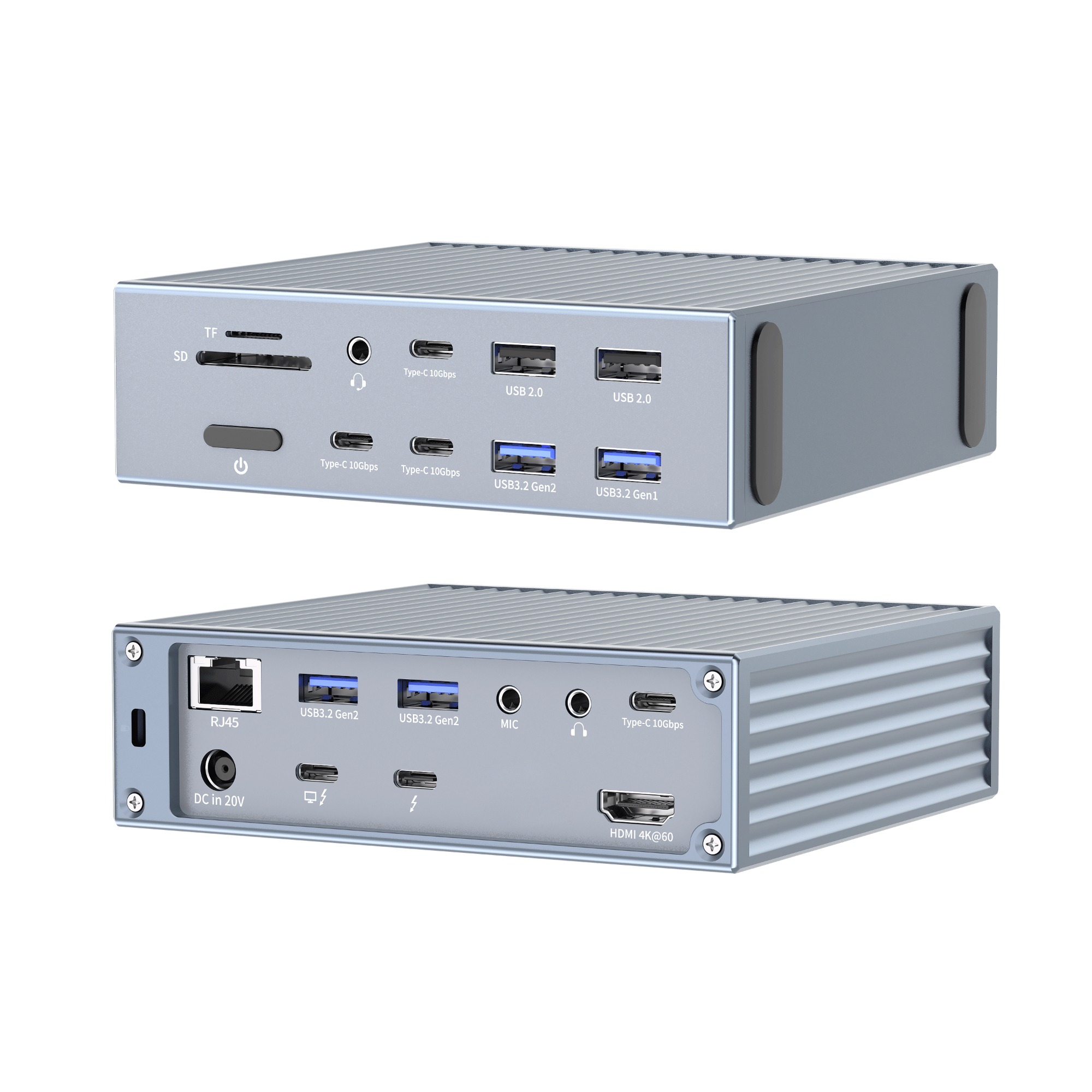 A: This dock supports ultra-high-definition displays up to 8K@60Hz via the Thunderbolt 4 downstream port. Additionally, the HDMI 2.1 port supports up to 4K@60Hz, making it perfect for professional video editing and 3D rendering.