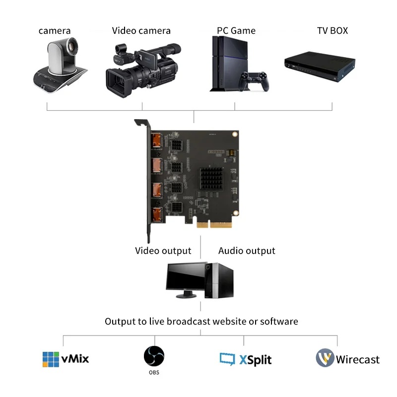 1、Support 4-channel simultaneous capture and broadcast.