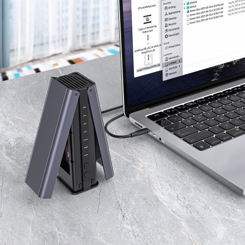 DEM008 cloning SSD Enclosure: USB3.1 data interface, built-in two-slot M.2 SSD card holder, convenient for high-speed data transmission; you can use up to 10Gbps data transmission speed, enjoy a fast and powerful plug-and-play experience.