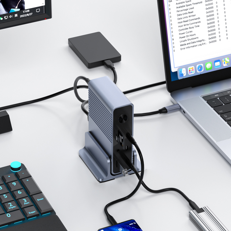 In this dock, we can meet almost any office requirements, Windows PC support MST and SST screen extension mode, MacOS PC support SST screen extension mode. Due to the protocol of the fast charge technology, 100 watts of fast charge can bring 80 watts of charge to the computer, and sufficient power supply can meet the continuous and stable use of multi-screen expansion. Of course, it's also perfect for Linux PC.