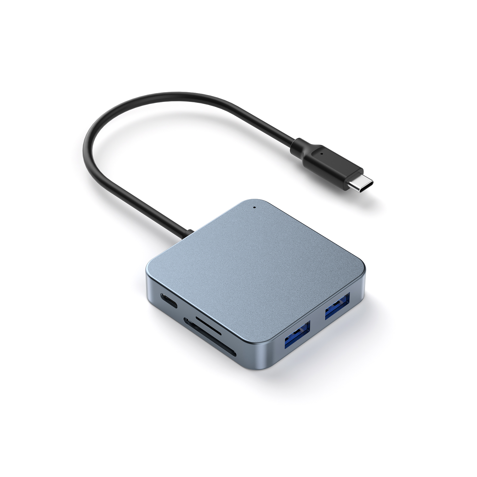 · Input Type C x1(Connect to host) · 1xType C(PD3.0 100W) · 1 HDMI(Max 4K@60Hz) · 1xType C 3.0(Max 5Gbps data transmission) · 3xUSB A 3.0(Max 5Gbps data transmission) · 1xTF/Micro SD3.0(Up to 104 Mb/s) · 1xSD/MMC 3.0(Up to 104 Mb/s) · Aluminum housing |